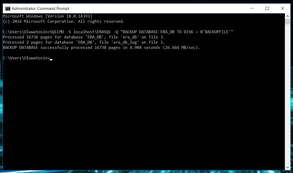 SQLCMD -S HOST\ERASQL -Q "BACKUP DATABASE ERA_DB TO DISK = N'BACKUPFILE'"